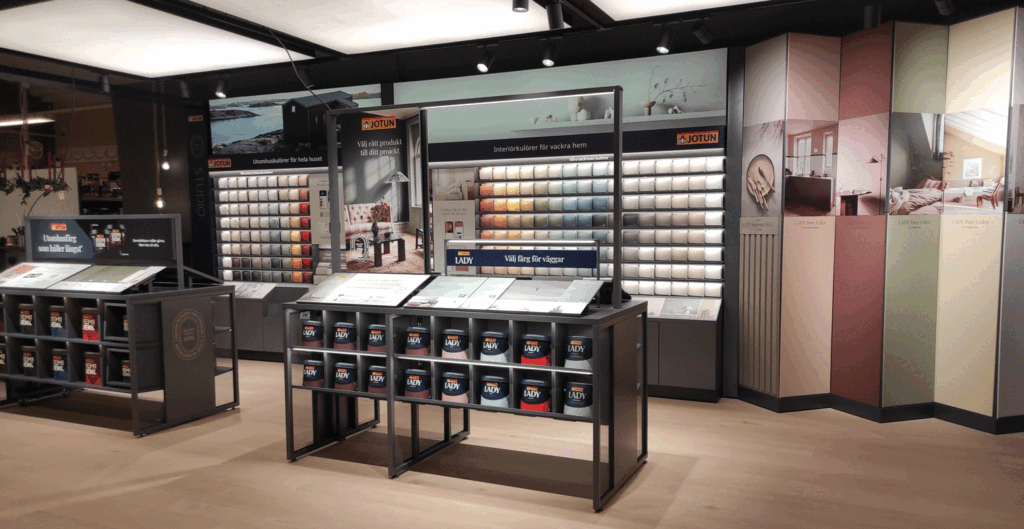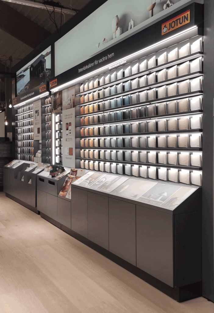 Kliv in i ett litet show room exklusivt för vårt Jotunsortiment.